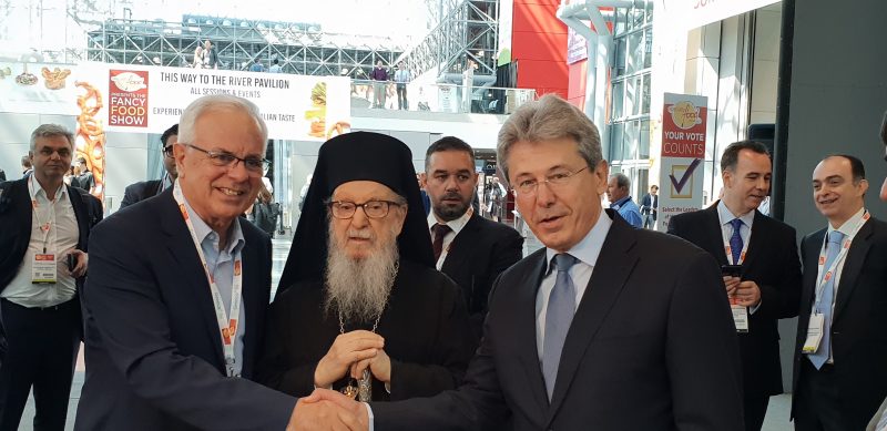 Το Ελληνικό Περίπτερο που βρισκόταν σε περίοπτη θέση και ήταν το πρώτο που αντίκριζαν οι χιλιάδες επισκέπτες, εγκαινίασαν ο Υπουργός Αγροτικής Ανάπτυξης και Τροφίµων, Ευάγγελος Αποστόλου και ο Ελληνοαµερικανός πρόεδρος της “Specialty Food Association”, (SFA), της µη κερδοσκοπικής οργάνωσης που διοργανώνει την ετήσια έκθεση, Φιλ Καφαράκης, παρουσία του Αρχιεπισκόπου Γέροντος Αµερικής κ. ∆ηµητρίου ο οποίος ανέπεµψε προσευχή.