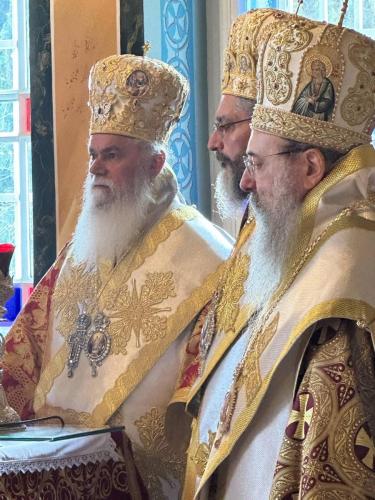 Οι εορταστικές εκδηλώσεις κορυφώθηκαν το πρωί της Παρασκευής με την Πανηγυρική Θεία Λειτουργία, στην οποία συλλειτούργησαν πλήθος Ιεραρχών: Ο Σεβασμιώτατος Μητροπολίτης πρώην Καλαβρύτων & Αἰγιαλείας κ. Ἀμβρόσιος, ὁ Σεβασμιώτατος Μητροπολίτης Πατρῶν κ. Χρυσόστομος, ὁ Σεβασμιώτατος Μητροπολίτης Νικοπόλεως καί Πρεβέζης κ. Χρυσόστομος, ὁ Σεβασμιώτατος Μητροπολίτης Νέας Κρήνης καί Καλαμαριάς κ. Ιουστίνος, ὁ Σεβασμιώτατος Μητροπολίτης Παραμυθίας, Φιλιατῶν καί Γηρομερίου κ. Σεραπίων, ὁ Θεοφιλέστατος Ἐπίσκοπος Κερνίτσης κ. Χρύσανθος καί ὁ Σεπτός Ποιμενάρχης μας Σεβασμιώτατος Μητροπολίτης Καλαβρύτων καί Αἰγιαλείας κ. Ἱερώνυμος.