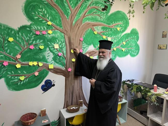 Κατά την εν λόγω επίσκεψη, ο Σεβασμιώτατος επικοινώνησε και με τα παιδάκια του συστεγαζομένου 1ου Νηπιαγωγείου Αιγίου, τα οποία τον αγκάλιασαν και έπαιξαν μαζί του.