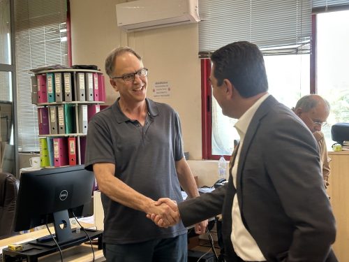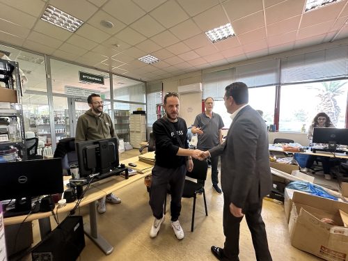 Τα δύο υψηλόβαθμα στελέχη της κυβέρνησης έγιναν δεκτά από τα μέλη της διοίκησης της ΠΕΣ, με επικεφαλής τους αντιπροέδρους κ.κ. Καρέλη και Μιχαλόπουλο, καθώς και τον γενικό διευθυντή κ. Μίλτο Σταυρόπουλο. Ξεναγήθηκαν στις σύγχρονες εγκαταστάσεις του συνεταιρισμού, στο συσκευαστήριο και στο κατάστημα αγροεφοδίων, εκφράζοντας τον θαυμασμό τους για την οργάνωση, τη λειτουργία και τη διαχρονική προσφορά της ΠΕΣ στους παραγωγούς της περιοχής.