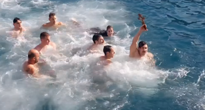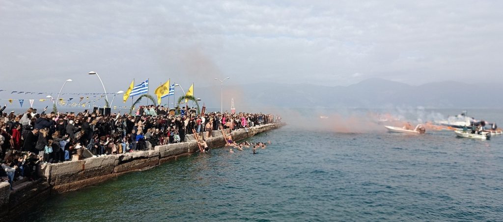 Η τελετή της καταδύσεως του Τιμίου Σταυρού τελέσθηκε υπό του Σεβασμιωτάτου Μητροπολίτου Καλαβρύτων και Αιγιαλείας κ. Ιερωνύμου, παρουσία του Σεβασμιωτάτου Μητροπολίτου πρώην Καλαβρύτων και Αιγιαλείας κ. Αμβροσίου, στην προβλήτα του παλαιού λιμανιού του Αιγίου, απ’ όπου 37 νέοι, μεταξύ των οποίων και μικρά παιδιά, έπεσαν στα νερά του Κορινθιακού για να ανασύρουν τον Σταυρό και να λάβουν την ευλογία και τη χάρη του Αγίου Πνεύματος.