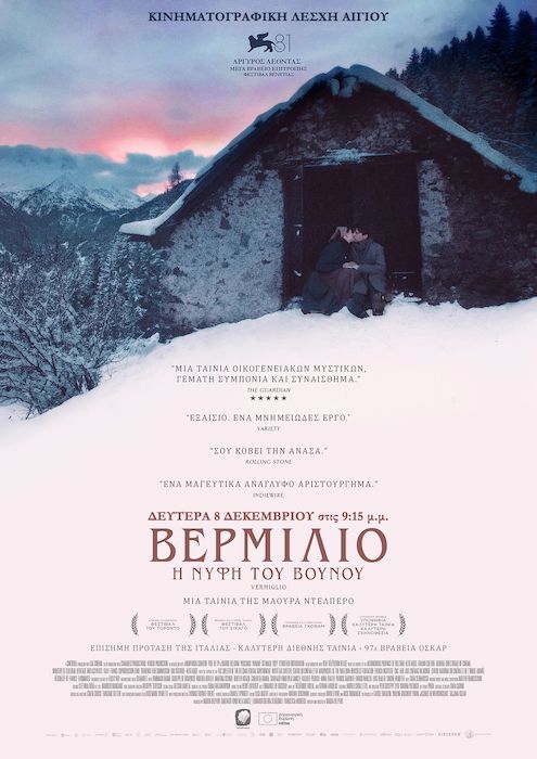 Επιστρέφουν οι χειμερινές προβολές για την Κινηματογραφική Λέσχη Αιγίου στον Δημοτικό Κινηματογράφο «Απόλλων» στο Αίγιο. Έχοντας καταρτίσει ένα πλούσιο πρόγραμμα με βραβευμένες ταινίες από τον παγκόσμιο και εγχώριο κινηματογράφο, ξεκινάει τη Δευτέρα 8 Δεκεμβρίου στις 21:15 με τηνταινία « Βερμίλιο: Η Νύφη του Βουνού ».