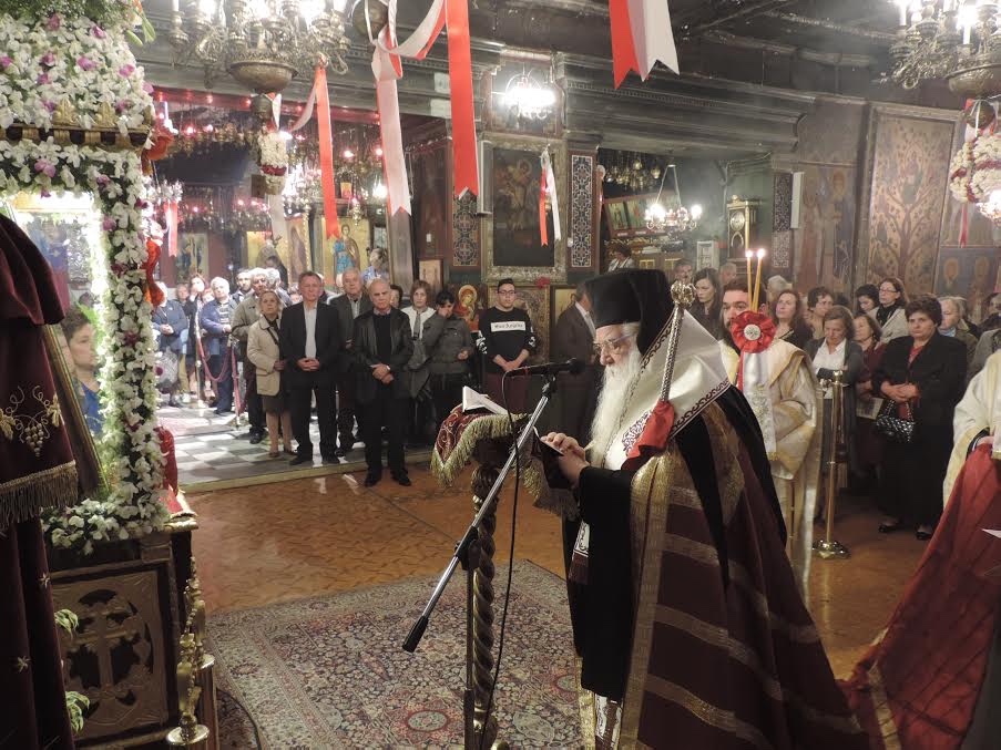 Στην σύντομη ομιλία του ο κ. Αμβρόσιος, αφού πρώτα ευχαρίστησε όλους τους συντελεστές τής εορτής για την προσφορά τους αλλά και τους πιστούς που συνέρρευσαν κατά χιλιάδες για ακόμα μια χρονιά στο Ιερό Προσκύνημα, ζήτησε να απευθύνουμε δεήσεις προς την Θεοτόκο ώστε να μας χαρίζει υγεία και να σώσει την πατρίδα μας από τα πολλά προβλήματα που την ταλαιπωρούν.