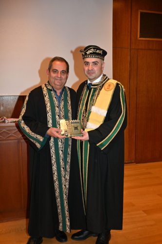 Ακολούθησε η ανάγνωση του ψηφίσματος από τον Πρύτανη κ. Χρήστο Μπούρα και η επίσημη αναγόρευση του τιμώμενου, ενώ η τελετή κορυφώθηκε με την περιένδυσή του με την τήβεννο και την απονομή του μεταλλίου του Πανεπιστημίου Πατρών.