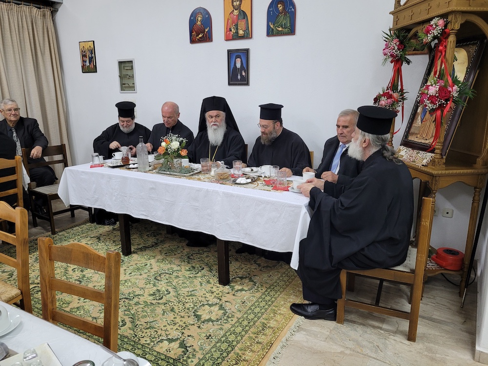 Μετά το πέρας των ακολουθιών, προσφέρθηκε στην αίθουσα του ενοριακού του Ναοὺ, τὸ καθιερωμένο κέρασμα από την πανηγυρίζουσα ενορία καί τον Σύνδεσμο των Αποστράτων σε όλους τους πιστούς .