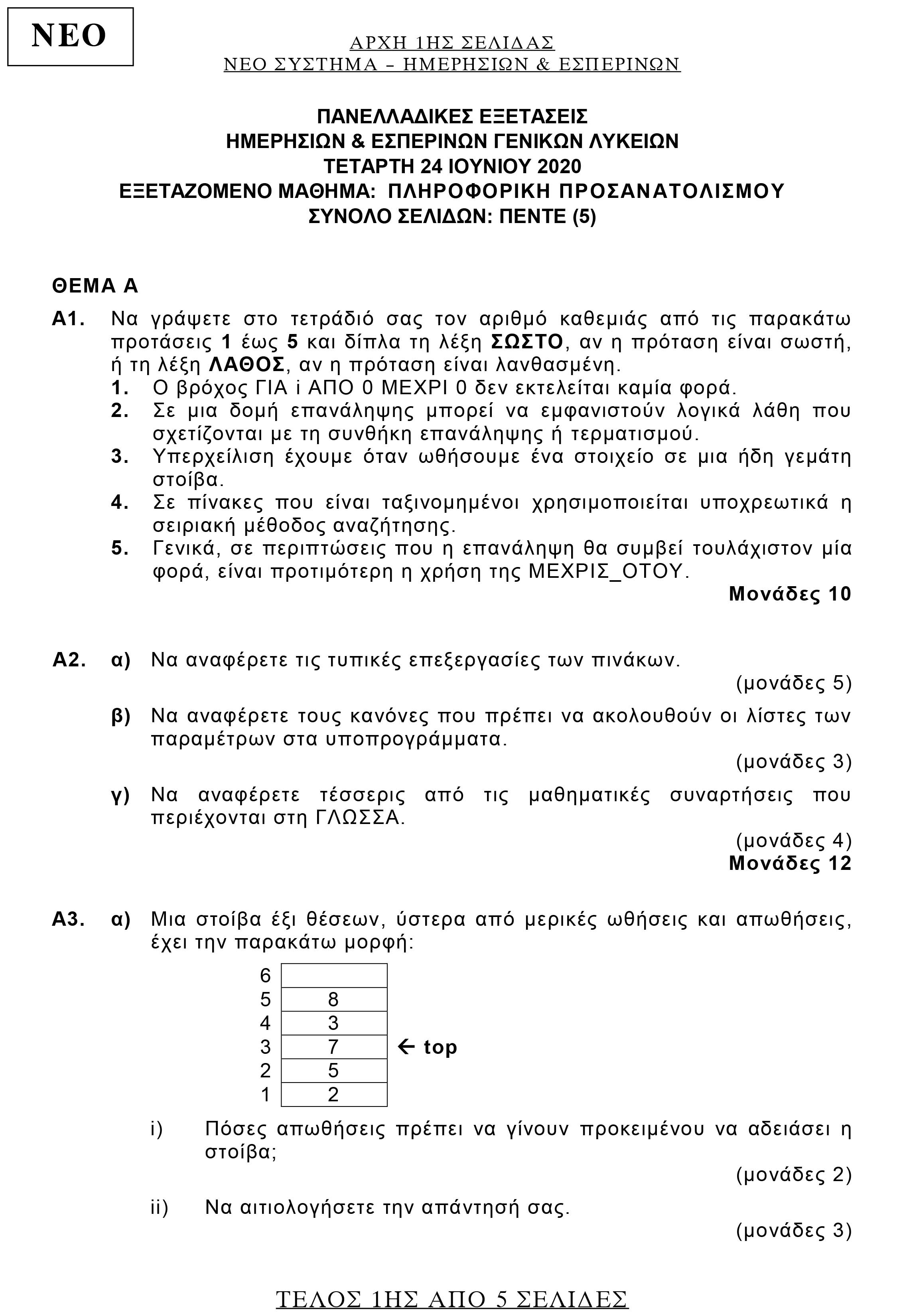 Φροντιστήριο “ΝΕΟ”: Τα θέματα στο μάθημα Πληροφορικής Προσανατολισμού