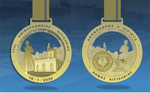 Το Σάββατο 17 Ιανουαρίου 2026, από τις 18:00 έως τις 20:00, στο ΠολύκεντροΣυνεδριακό Κέντρο Αιγίου (Ψαρών 2, Μυρτιά), θα πραγματοποιηθεί η κεντρικήεπετειακή εκδήλωση με βραβεύσεις αθλητών για τις διακρίσεις τους τηνπροηγούμενη αγωνιστική χρονιά, καθώς και η παρουσίαση του νέου συλλεκτικούμεταλλίου του Ημιμαραθωνίου Αιγιαλείας, εμπνευσμένου από την ιστορία και τη γητης Αιγιάλειας.