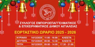 Το εορταστικό ωράριο των καταστημάτων της Αιγιάλειας