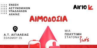 Εθελοντική Αιμοδοσία από την Ένωση Αστυνομικών Υπαλλήλων Αχαΐας στο Αστυνομικό Τμήμα...