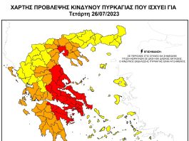 Πολύ Υψηλός κίνδυνος πυρκαγιάς έως κατάσταση συναγερμού την Τετάρτη 26 Ιουλίου στη Δυτική Ελλάδα