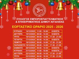 Το εορταστικό ωράριο των καταστημάτων της Αιγιάλειας