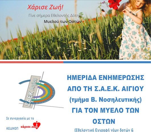 Αμφιθέατρο Σ.Α.Ε.Κ. Αιγίου: Δράση Ενημέρωσης για τη Δωρεά Μυελού των Οστών