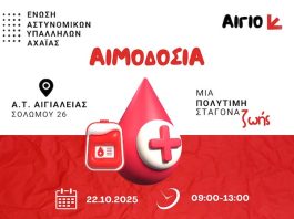 Εθελοντική Αιμοδοσία από την Ένωση Αστυνομικών Υπαλλήλων Αχαΐας στο Αστυνομικό Τμήμα…