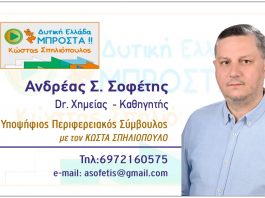 Ανδρέας Σοφέτης: “Από το Δήμο στην Περιφέρεια με τον Κώστα Σπηλιόπουλο”