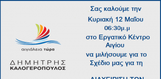 Πρόσκληση σε ημερίδα για τα απορρίμματα από την παράταξη “ΑΙΓΙΑΛΕΙΑ ΤΩΡΑ”