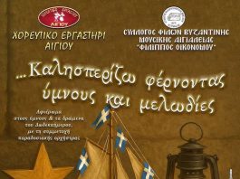 «Καλησπερίζω φέρνοντας ύμνους και μελωδίες» – Εορταστική εκδήλωση από το Χορευτικό Εργαστήρι Αιγίου και Σύλλογο Φίλων Βυζαντινής Μουσικής